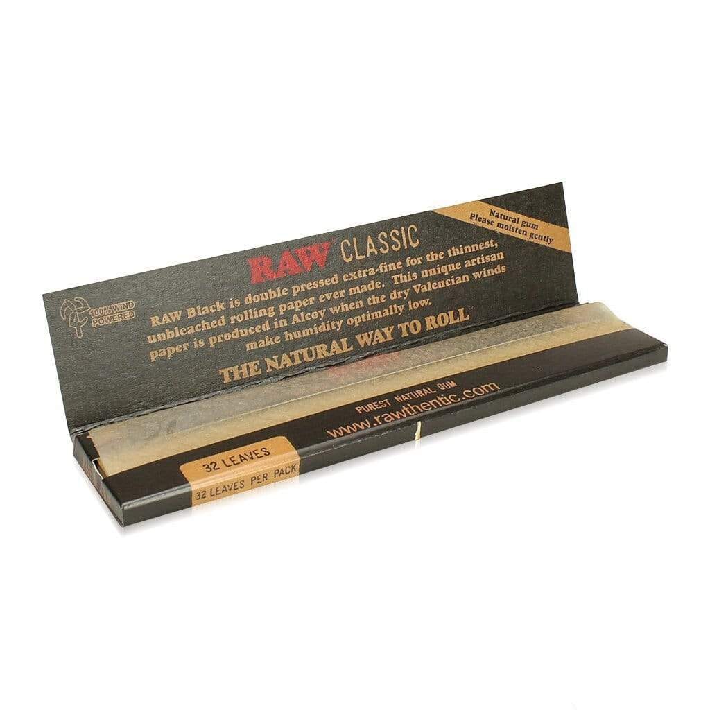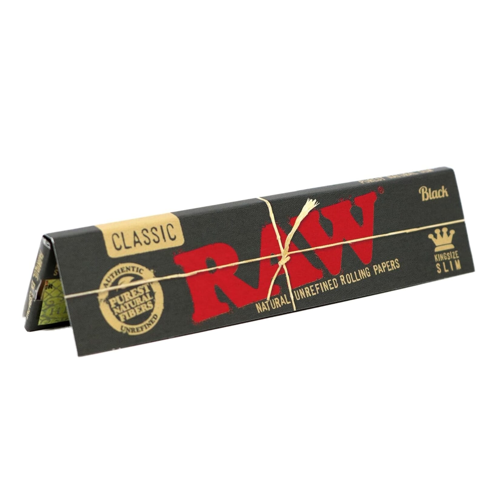 RAW Black King Size Slim rolling papers sold individually. Ultra-thin, unbleached, and 100% natural for a pure roll and slow burn.