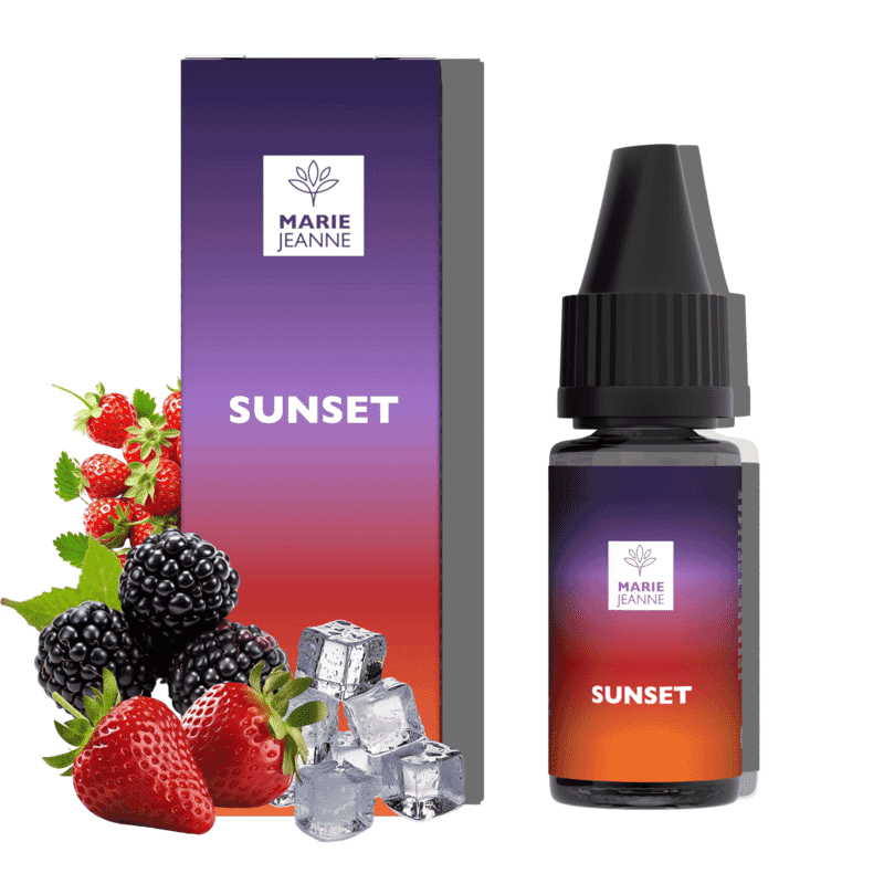 Fall in love with Sunset, a unique creation by Marie Jeanne. Discover the fresh, tangy flavour of this CBD e-liquid, with hints of red and wild berries enhanced by fresh notes. The sun goes down over the horizon and all the senses are invigorated by the perfect alchemy of Sunset and its delicious cocktail of fruits.