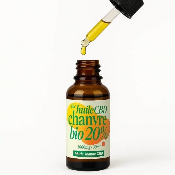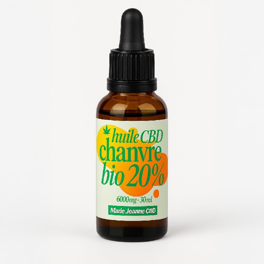 Organic CBD Oil 20% (6000mg – 30ml): pure isolate with 0% THC, made from French organic hemp and lab-certified. Packaged in a 30ml bottle with an integrated dropper for precise dosing. A natural, vegan, and potent formula designed to easily incorporate CBD into your daily routine.