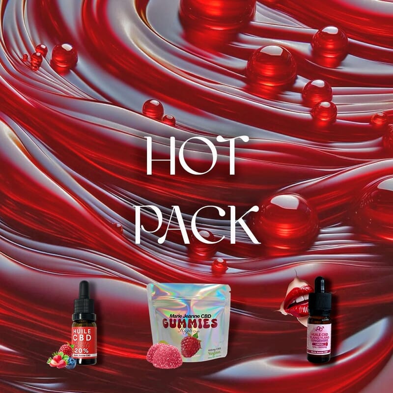 Libido & CBD... Less stress more pleasure ! Share or gift an enchanting experience with our Hot CBD Pack, combining well-being, desire, and indulgence. Enjoy three carefully selected products designed to awaken your senses and create a truly unique moment of intimacy.