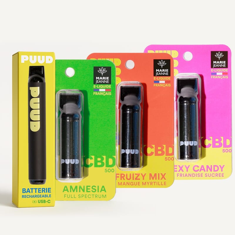Discover the new rechargeable CBD puff with our Pack PUUD Multi-Flavor Discovery. This pack includes everything you need to start your CBD vaping journey in style and with ease.