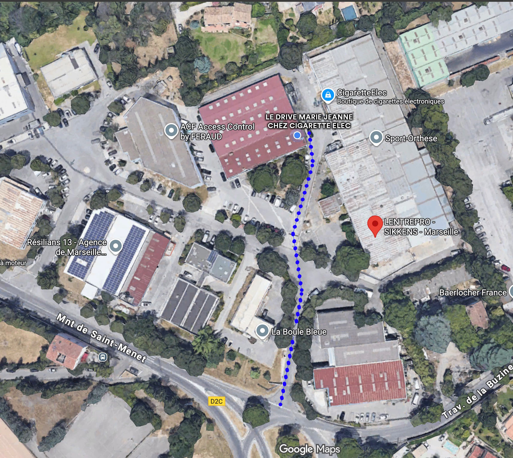 Le retrait des commandes Marie Jeanne se fait dans la boutique physique de CigaretteElec.fr, située à droite du bâtiment gris au toit rouge (voir plan ci-dessous).