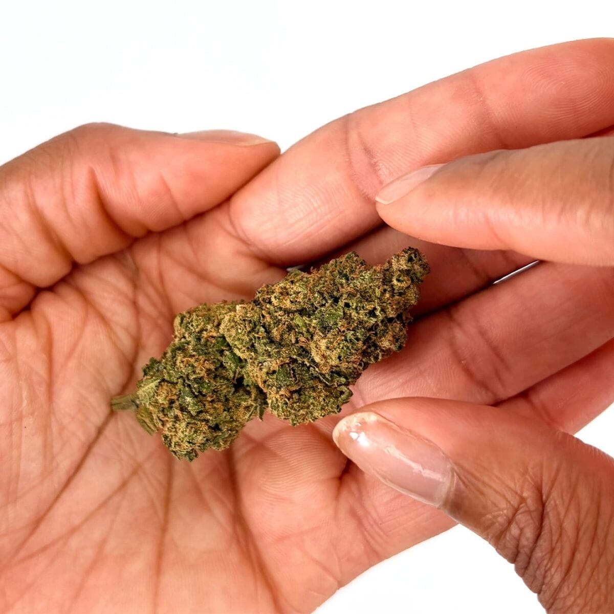 Visuellement, cette fleur de CBD présente des bourgeons compacts et bien manucurés, aux teintes vert clair, ponctués de quelques pistils orangés. Sa texture dense et riche en pollen témoigne d’un séchage maîtrisé et d’un affinage soigné, respectueux de la plante.