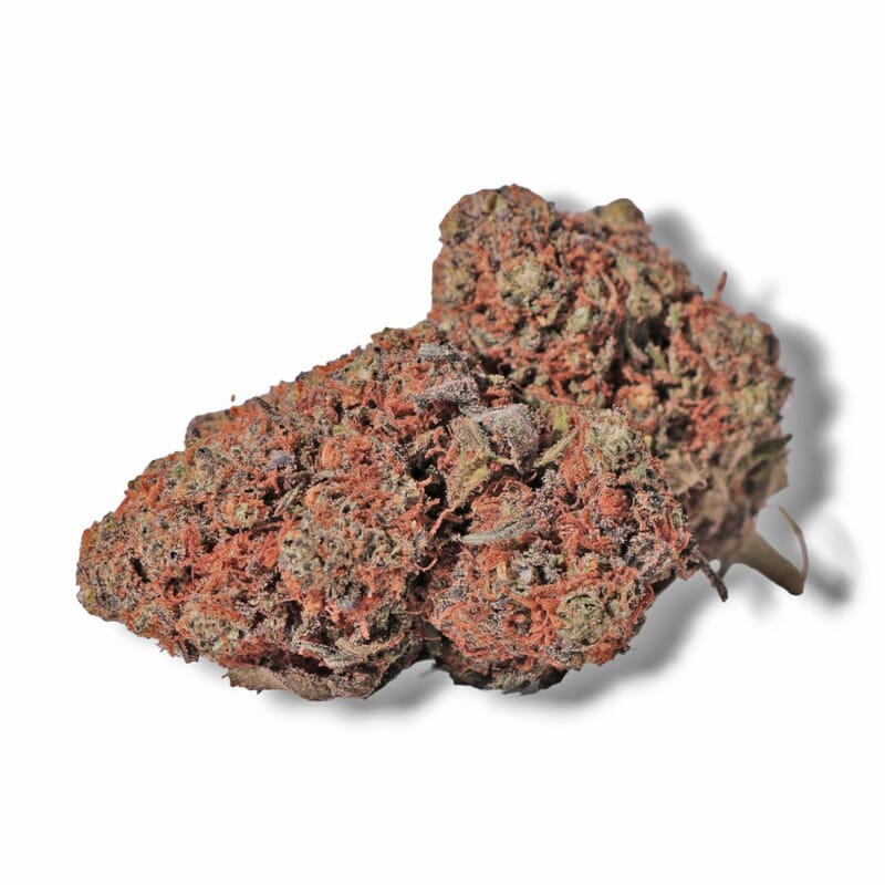 - Apparence : Ses bourgeons compacts et bien formés dévoilent une palette de pourpre profond et de vert, accentuée par une généreuse couverture de trichomes cristallins. Les pistils orange apportent un contraste vif qui souligne la qualité de la fleur, ce qui fait d’elle une fleur visuellement très attrayante!