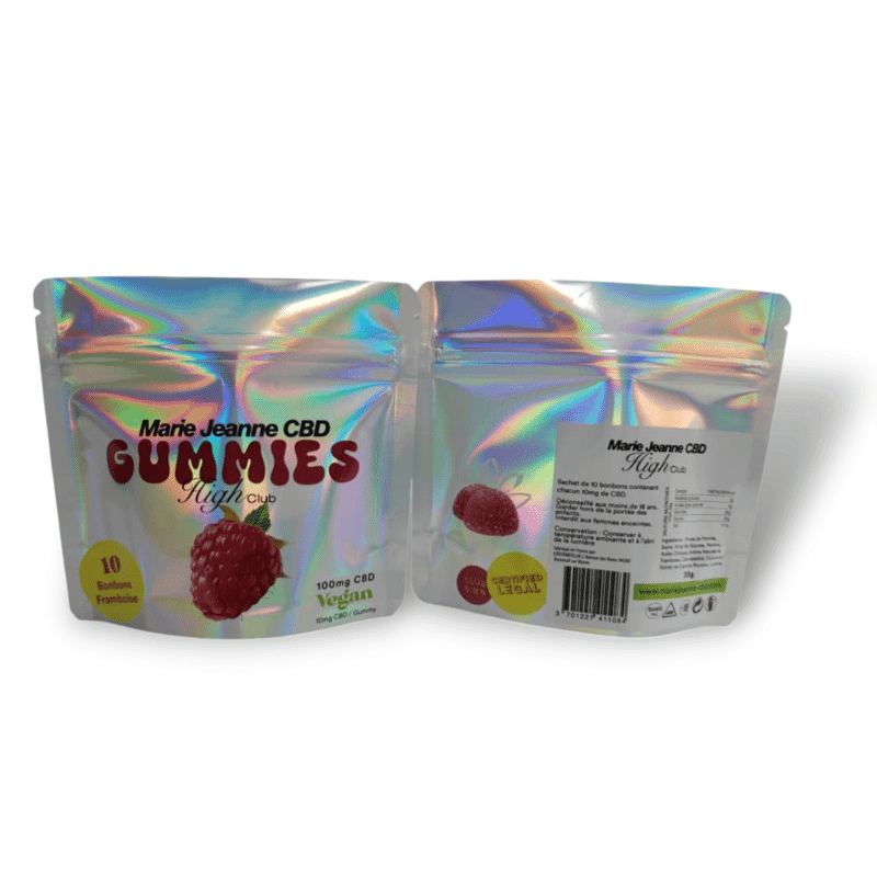 Délicieux bonbons gélifiés au CBD à l'arôme naturel de framboise. Produit végan, sans colorants, conservateurs ni THC. Vendu en doypack contenant 10 bonbons pour une conservation optimale. Facile à consommer et à doser, chaque bonbon contient 10 mg de CBD pur.
